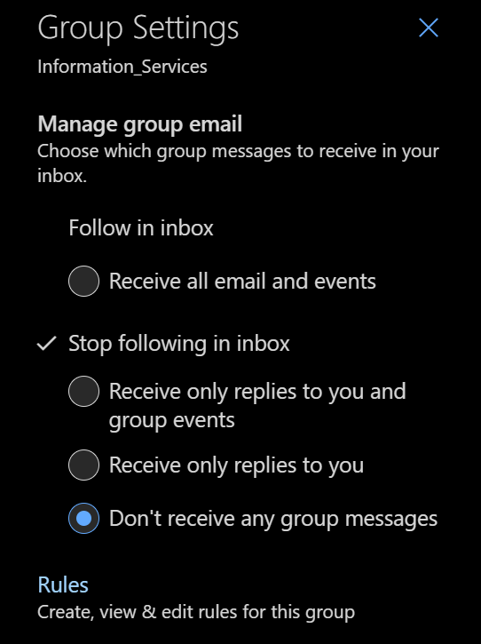Turn on/off email sent to your Teams