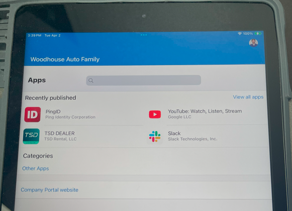 Apps should start to download automatically depending on the group you are a member of so give it about 5 mins for the apps to load. (ex. Xtime) If you see that your app is not downloading go ahead and select view all apps find your app form the list and select install.