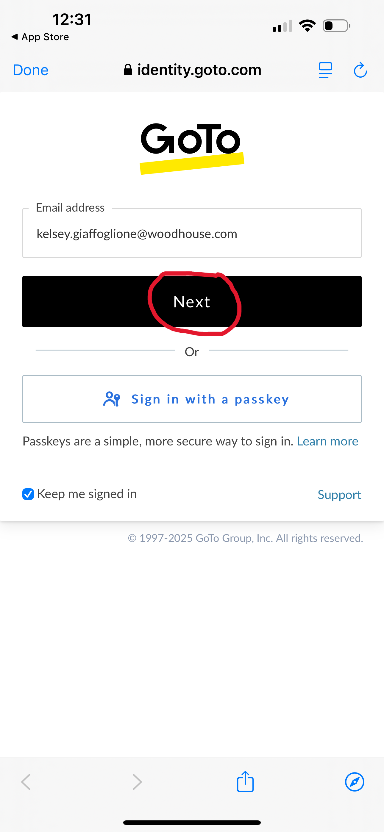 Step 7: Navigate back to the GoTo app and select "Yes" on the stay signed in question