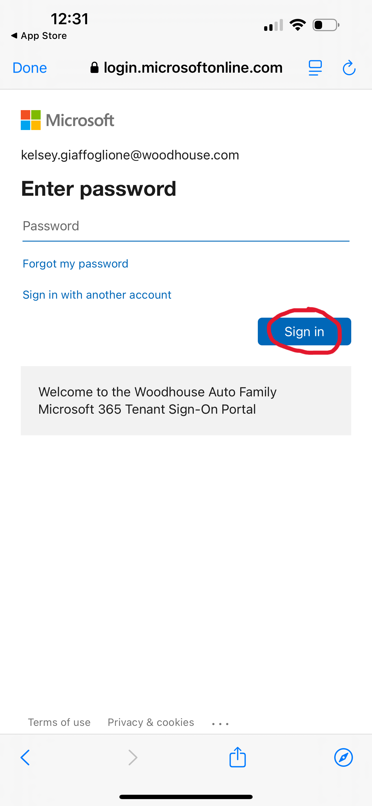 Step 5: It will then divert you to a Microsoft login, this is where you will enter your Woodhouse email passcode and click "Sign in"