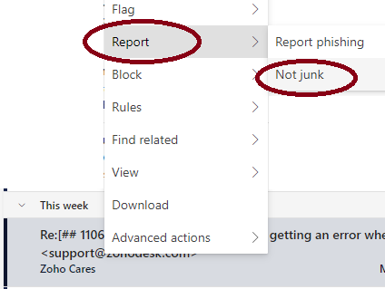 - Select "Report > Not junk"