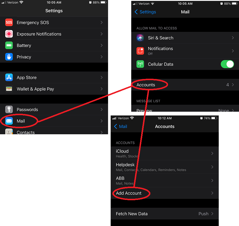 Go to “Setting – Mail - Accounts” and click “Add Account”.