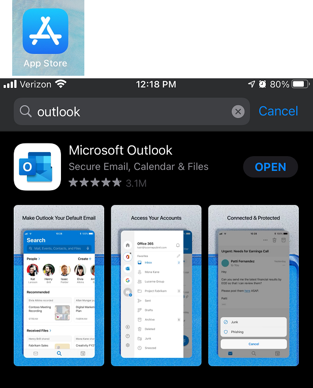 Download the Outlook App from the App Store