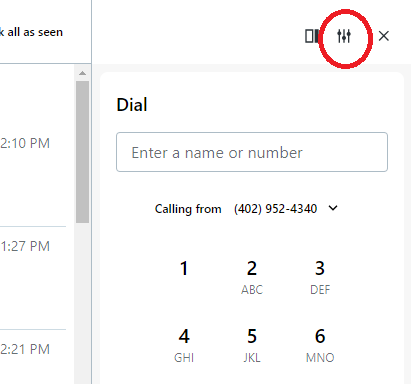 Click Show Setting Icon above the dial pad.